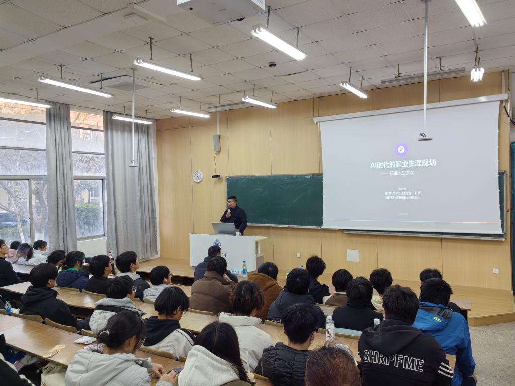 特邀知行元科技苏州分公司负责人、计算机科学与技术专业校友翟金鑫开展《AI时代的职业生涯规划》主题讲座。计算机科学与技术、人工智能等相关专业的200余名学生共同参与了此次活动。